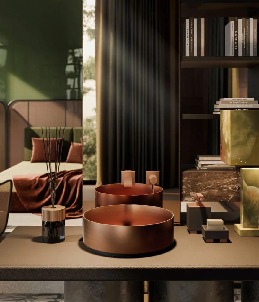 Tauchen Sie ein in das Universum der raffinierten Schönheit von GESSI, das mit seinen Kreationen oder maßgeschneiderten Details und Oberflächen jede Installation in eine Oase der Eleganz und des Wohlbefindens verwandelt. Die hohe Qualität und der unverwechselbare Stil des Made in Italy verleihen jedem Projekt einen zeitlosen Charme. Wählen Sie aus dem breiten Angebot an Kunsthandwerk, um Ihren Raum mit Wert und Persönlichkeit zu bereichern.
